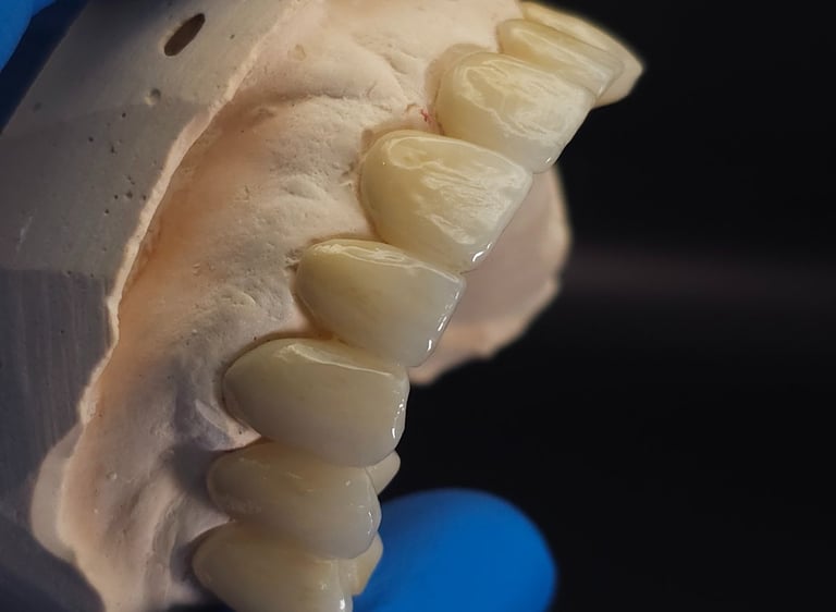 Fabricamos coronas y puentes en zirconia o disilicato, garantizando calidad y precisión en cada pieza.